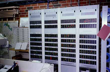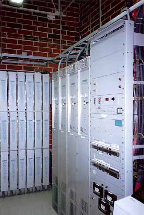 This is the interior of the Sprint Cellular station (MTSO) through which Kevin Mitnick's phone calls were routed. Click on an image to see the full version.